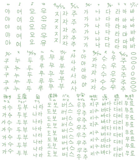 単語を見ながら発音を聞いて、ハングルを組み立てていくという